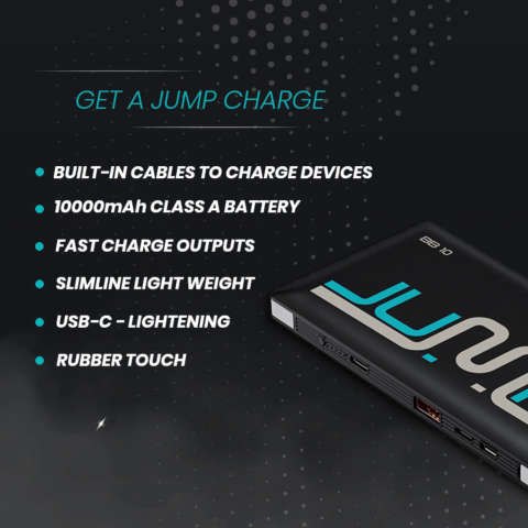 The Jump BB10 is a modern Lithium Polymer battery bank with dual built-in cables for